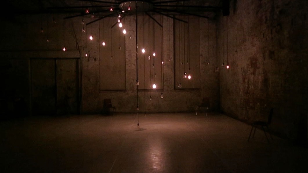 In the installation light bulbs hanging from the domed space light up and go out, thus forming ever changing, abstract rhythmic constellations. As the visitors walk among them, sounds and voices can be heard coming from different directions. The sound composition is particularly dramaturgic and rather staged: there are various sounds being heard, they stop, or flow into music. A recorded voice switches on, and we recognize an expert commenting on the issue… The work relies as much on the verbal communication to the viewer as on the associative one.