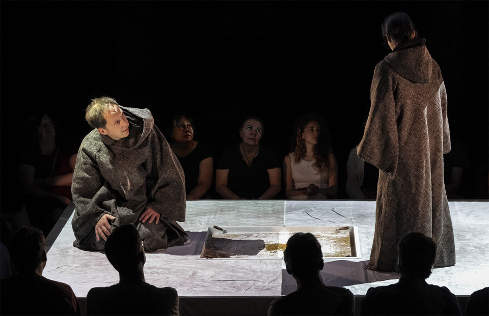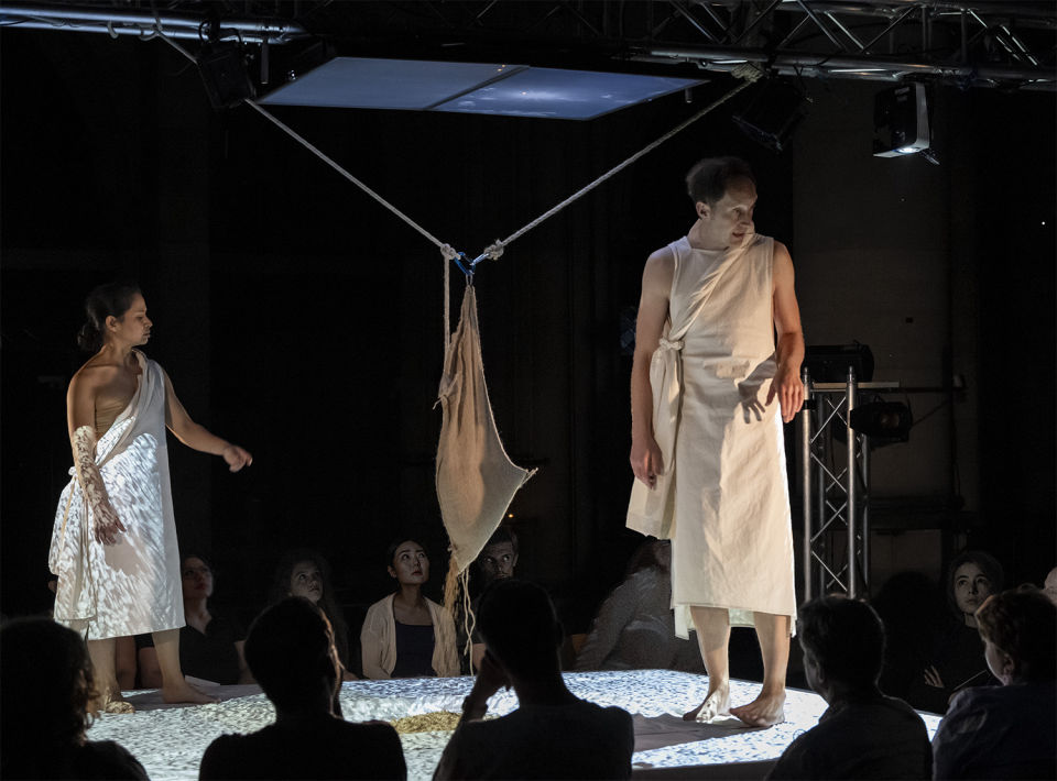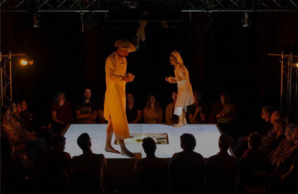 Post Theater spielt auf der Bühne den Kreislauf vom Ackerboden über‘s Korn zum Brot durch. Mit Videokunst, Musik und Schauspiel werden dem Publikum überraschende Geschichten auf einem großen Abendmahlstisch serviert – mal in komischen und mal in tragischen Szenen.