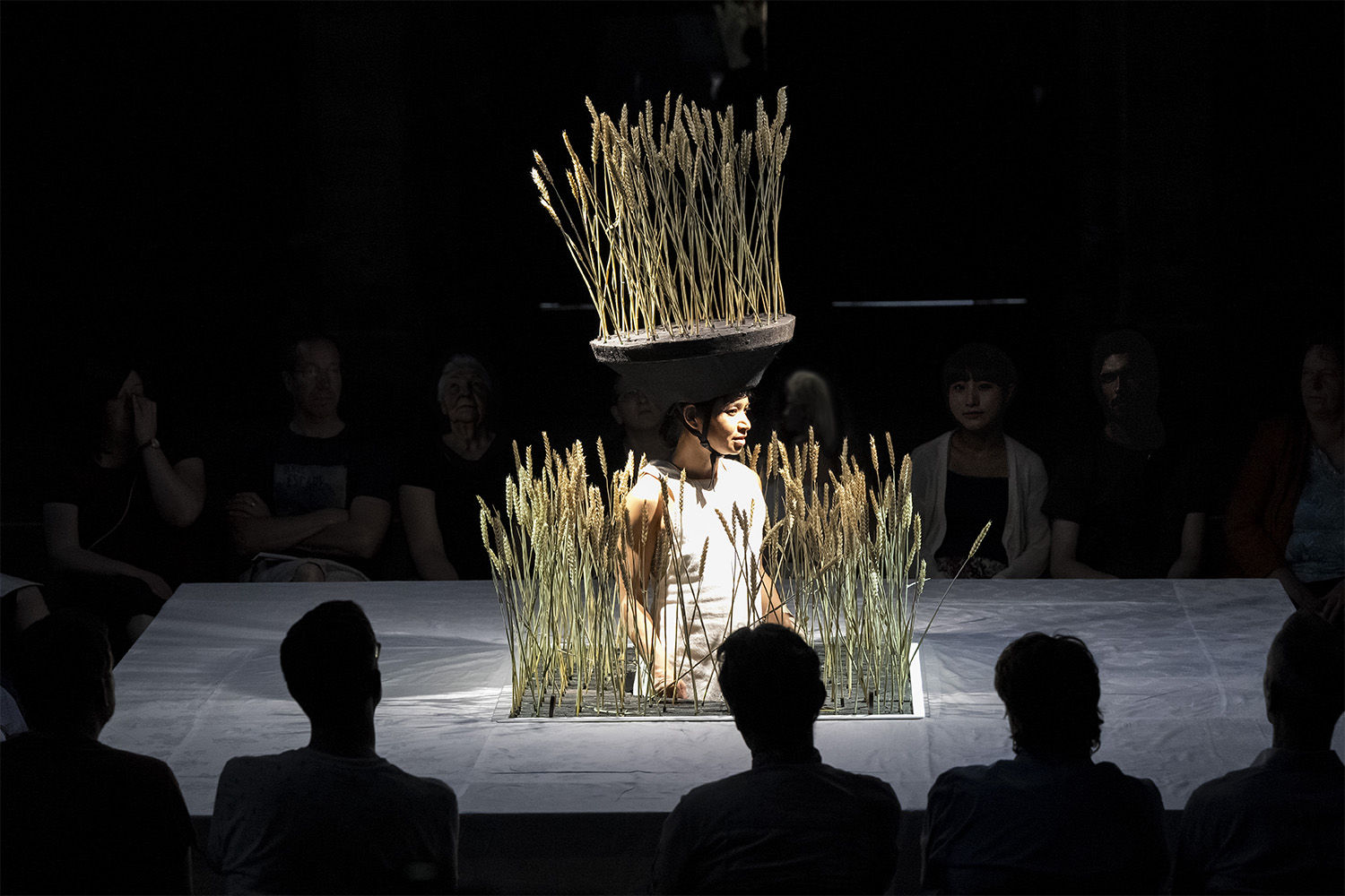 Post Theater spielt auf der Bühne den Kreislauf vom Ackerboden über‘s Korn zum Brot durch. Mit Videokunst, Musik und Schauspiel werden dem Publikum überraschende Geschichten auf einem großen Abendmahlstisch serviert – mal in komischen und mal in tragischen Szenen.